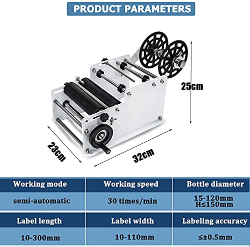 Specification: SUSEMSE Ronde flessenlabelmachine, instelbare halfautomatische etiketteermachine, handmatige etiketteermachine voor…